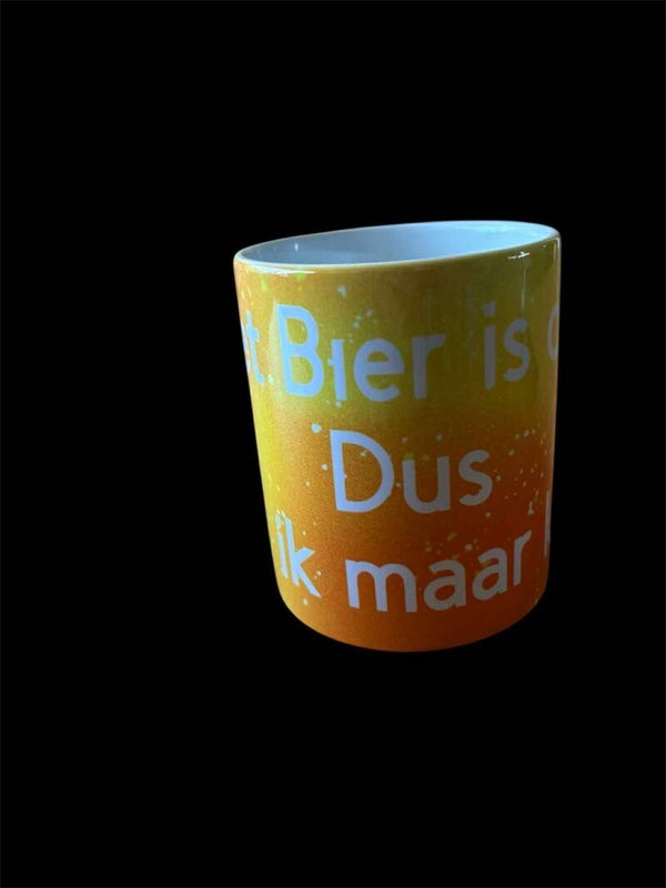 Leuke tas met opdruk het bier is op dus drink ik maar koffie