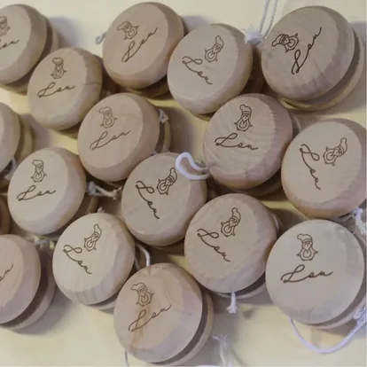 deze leuke jojo wordt gevuld met snoepjes en bovendien voorzien van tekst en foto achter de wanden